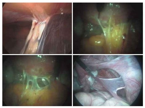 A veces cuando se presentan infecciones pélvicas que comprometen las trompas y los ovarios, cuando el proceso ya ha sido tratado, quedan secuelas, llamadas ADHERENCIAS, que yo las comparo y se las explico a mis pacientes como cuando van caminando y pisan un chicle en el suelo, y al levantar el pie se observan esas formas alongadas y elásticas.